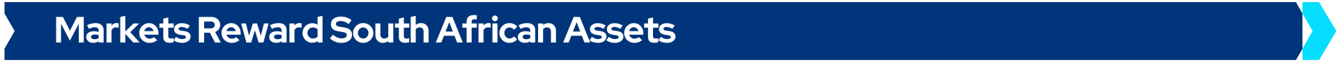 Market performance reflected broad-based strength across SA equities, bonds, and commodities. The FTSE/JSE All Share Index delivered a robust 42% return over one year, while bonds returned an impressive 24%. We also saw improving earnings expectations and renewed foreign inflows into undervalued South African assets. Many active managers now hold overweight positions in local equities.